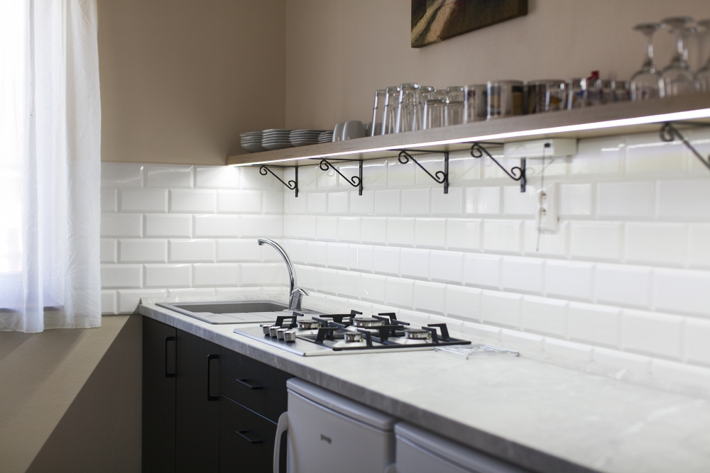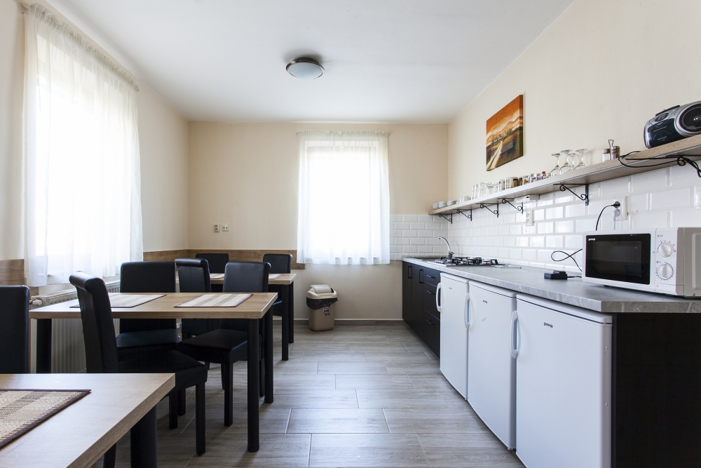 Bez stravy. Možnosť prípravy jedla v kuchyni. 2 x kuchyňa s jedálňou (chladnička s mrazničkou, rýchlovarná kanvica, sporák elektrický. počet platní 4, mikrovlnka). Reštaurácia: 100 m, Obchod (potraviny): 400 m.